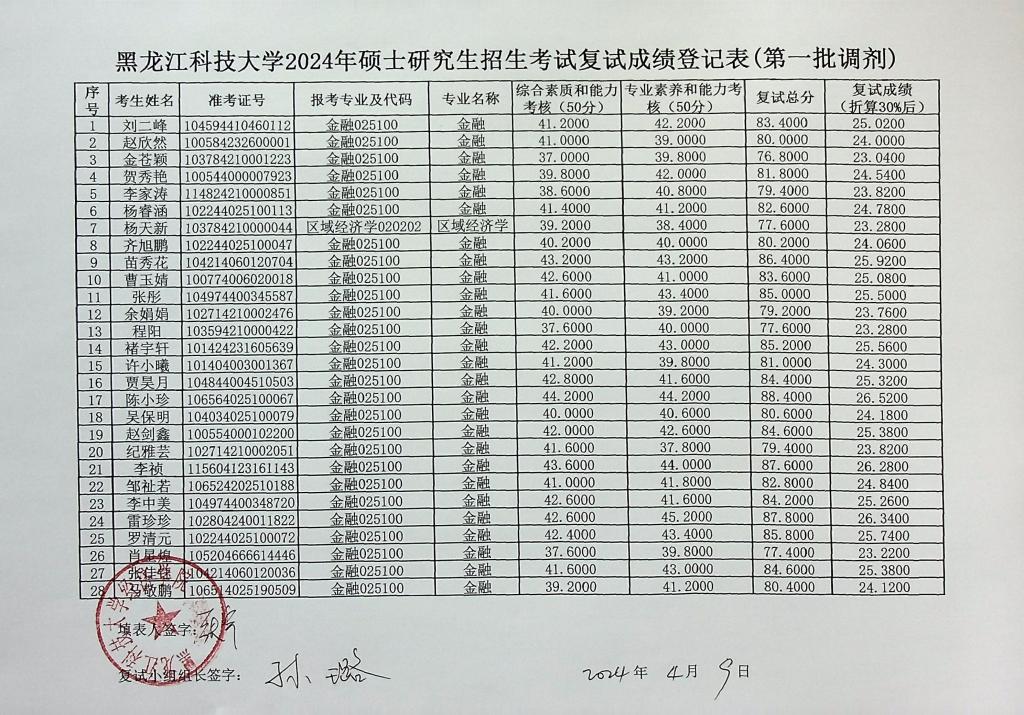 新葡萄8883官网AMG官网2024年硕士研究生招生考试复试成绩登记表(第一批调剂)