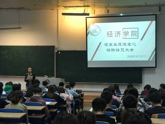 为进一步加强学生行为规范性引导,持续推进文明教室、文明寝室建设,营造学生宜学环境,促进学风建设,提升学生心理健康水平,切实做好学生异常言行排查和每日零汇报工作,使学院安全稳定工作取得实效,新葡萄8883官网AMG官网于2018年4月27日下午16:30在主楼WN0303召开全体寝室长及寝室心理联络员大会。