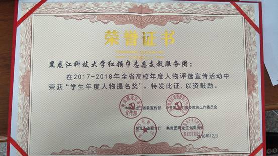 我院“红领巾”志愿支教服务团荣获“学生年度人物提名奖”荣誉称号。