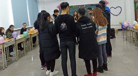 联欢会开始之前,同学们简要介绍了自己和家乡的一些新年习俗,增加相互了解的同时,也开拓了视野。欢快有趣的游戏《乌鸦与乌龟》拉开联欢会的帷幕,同学们演唱的歌曲《等你下课》、《有你》、《可爱》、《K歌之王》等赢得了热烈的掌声和阵阵喝彩。穿插其中的小游戏《爱的抱抱》、《艺术家与雕塑》等在带来欢乐的同时,拉近了同学之间的距离,培养了团结意识,营造出融洽相处的氛围。最后,联欢会进入尾声,所有同学都写下属于自己的2019心愿卡,带着对未来的憧憬,拥抱明天,迎接更美好的自己!