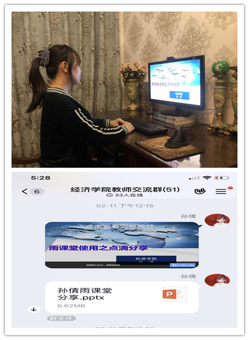 教师党员孙倩,响应学院党委号召,在疫情防控期间“学生停课不停学,教师停课不停教”的要求下,结合自已长期积累的网络教学经验,开学前积极主动地精心制作出雨课堂使用的辅导PPT和辅导视频,在学院教师群中和同事们进行经验分享,保证疫情期间教学效果。