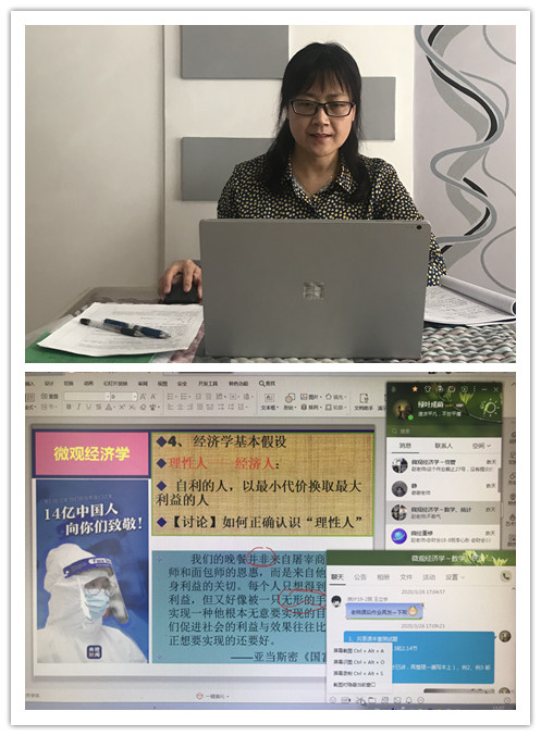 教师党员赵冬花,课上运用腾讯会议共享屏幕,动画播放PPT+语音直播,讲解难点、强调重点。在课下利用“智慧树平台翻转课+智慧树共享课+QQ群”进行“作业、习题+测试+答疑”,按教学计划有序组织教学。同时积极挖掘课程中思政教育元素,通过案例教学法,向学生传递社会主义核心价值观,发挥微观经济学专业课程的“课程思政”引领作用。