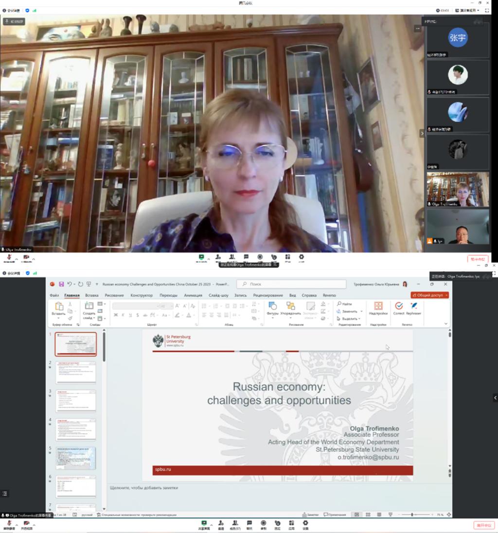 10月25日下午,新葡萄8883官网AMG官网与国际交流合作处采取线上形式联合举办学术讲座,俄罗斯圣彼得堡国立大学OIga Trofimenko副教授应邀参加此次中俄经济合作线上交流活动并作学术报告。相关学院教师、学生六十余人参会。此次报告会由新葡萄8883官网AMG官网经济系教师刘宇卓老师主持,新葡萄8883官网AMG官网副院长孙璐在开场致辞中强调此次论坛对促进黑龙江省与俄罗斯之间的经济合作与学术交流具有重要的意义。