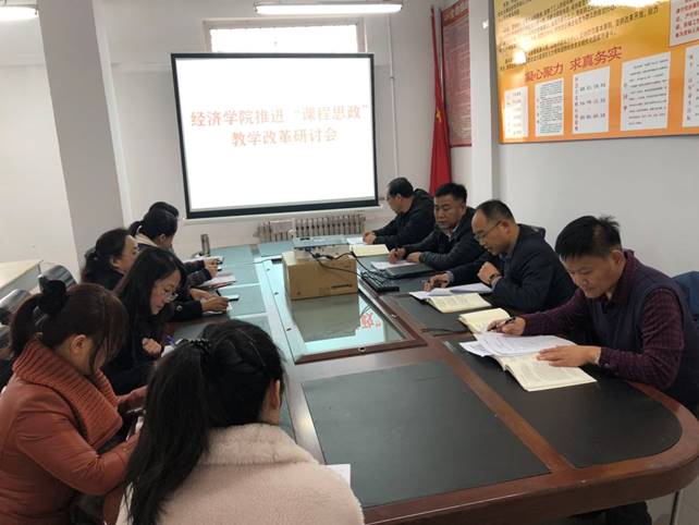 会上,副院长张汝根教授领学了习近平总书记在全国教育大会、全国高校思想政治工作会议精神、习近平关于教育的论述中关于“立德树人”的相关论述、省委书记张庆伟10月23日在高校主题教育座谈会上的讲话精神等内容。教师党支部书记(系主任)王莉、姜颖、孙璐、李梅及徐永智、赵冬花、孙倩等骨干教师,分别谈了对“课程思政”的认识,分别从所讲授的《国际金融》、《西方经济学》、《经济法》、《国际经济学》、《经济史》、《房地产开发与经营》、《国际投资》等课程讲述了将思想政治理论与专业课程教学有机融合的做法及体会。党委副书记贺龙军从大学生思想政治教育的角度,围绕课程思政的内容设计、课程载体和引导学生等方面,阐述了“课程思政”的切入点。副院长孙永波阐述了专业课程教学应融入哪些政治思想教育内容,从对比分析、案例研究、实地调研和科研促教学等四个方面讲述了如何开展“课程思政”教学,并就部分教师在“课程思政”教学过程中所遇到的问题进行了回应。最后,学院党委书记张宝成从“立德树人”的初心与使命、“课程思政”的重要意义、“课程思政”的内涵要求、“课程思政”的隐性教育性质、强化教研提升“课程思政”教学能力、在推进“课程思政”教学改革中,充分发挥党支部的主体作用和党员的示范引领作用六个方面进行了总结,强调全院上下要以此次研讨会为契机,努力推进学院“课程思政”教学改革,真正落实“立德树人”的根本任务,实现教师教书育人的初心和使命。